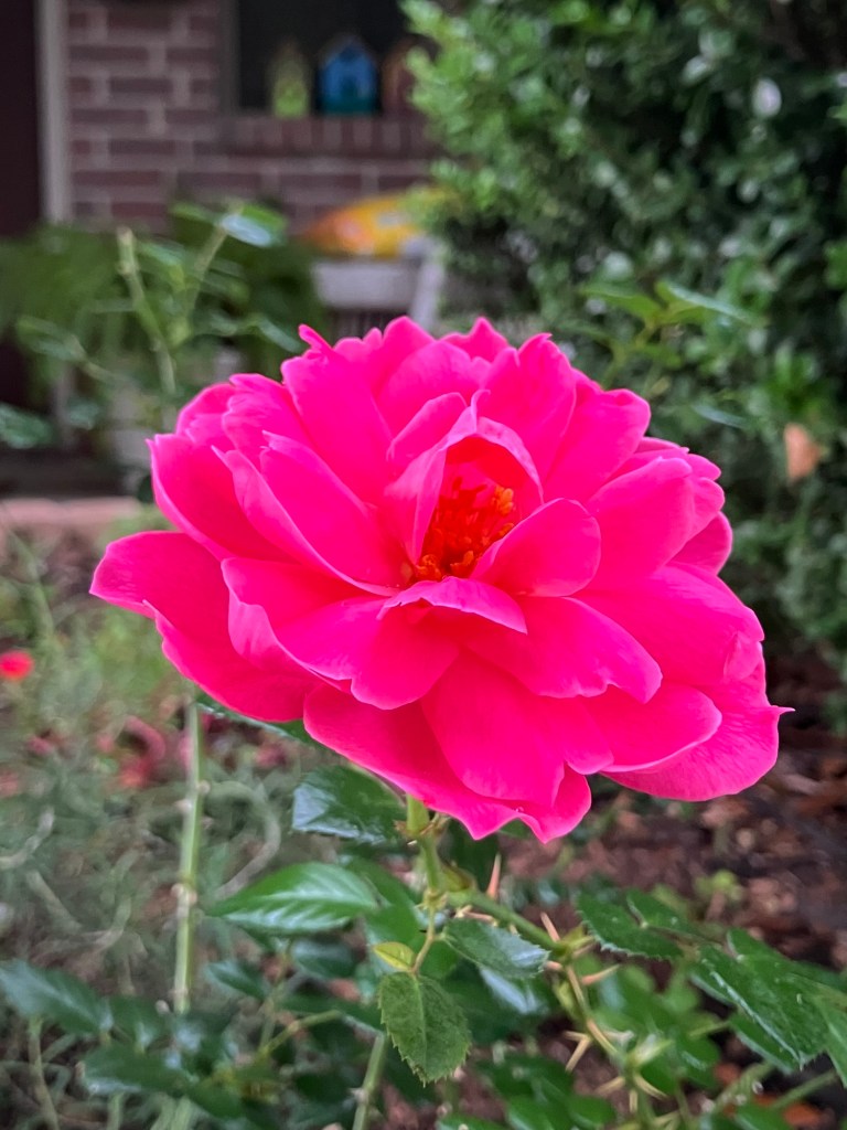 Isn’t it beautiful?? It smells heavenly too. It just opened today, right before it rained. I ran out to grab a few photos in case the rain got heavy and beat it down. (It didn’t.) The rain was part of a cold front and it’s 58 right now at 8:30 PM. There is still a lot of rain in the area but it’s going to be lovely tomorrow. I’m thankful for every cool day we can get, summers being what they are around here!